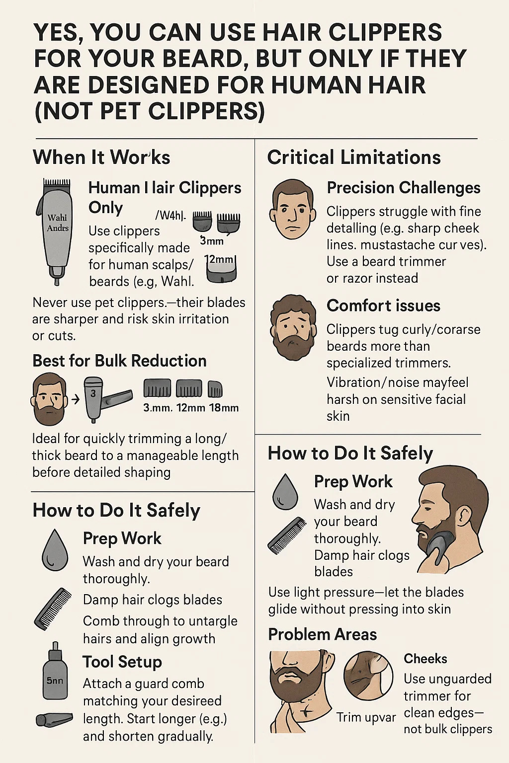 Ano, můžete použít zastřihovače vlasů pro vaše vousy, ale pouze pokud jsou určeny pro lidské vlasy (ne pro stříhačky domácích mazlíčků). Zde je podrobný praktický průvodce: